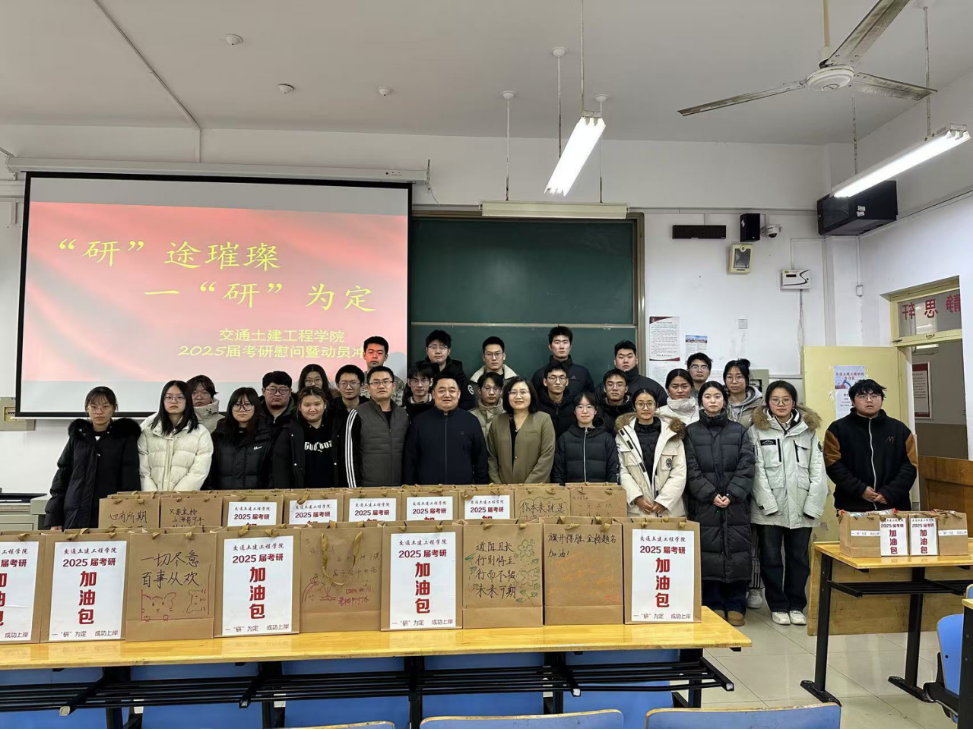 12月17日下午,学院在土木实验楼A204召开“‘研’途璀璨、一‘研’为定”——2025届毕业生考研慰问暨冲刺动员活动,学院党委副书记董文祥、毕业生辅导员李敏、尹军宗,2025届考研学生代表参加此次活动。