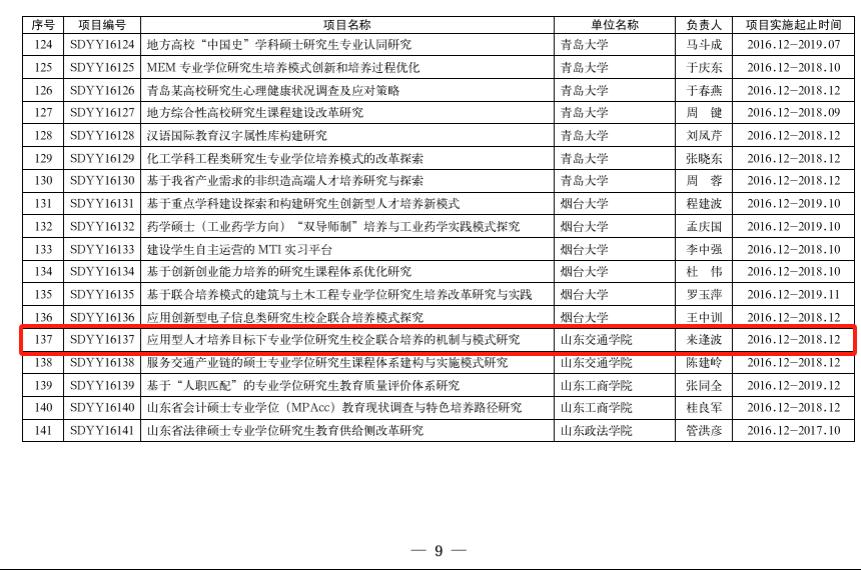 山东省人民政府学位委员会、山东省教育厅:应用型人才培养目标下专业学位研究生校企联合培养的机制与模式研究