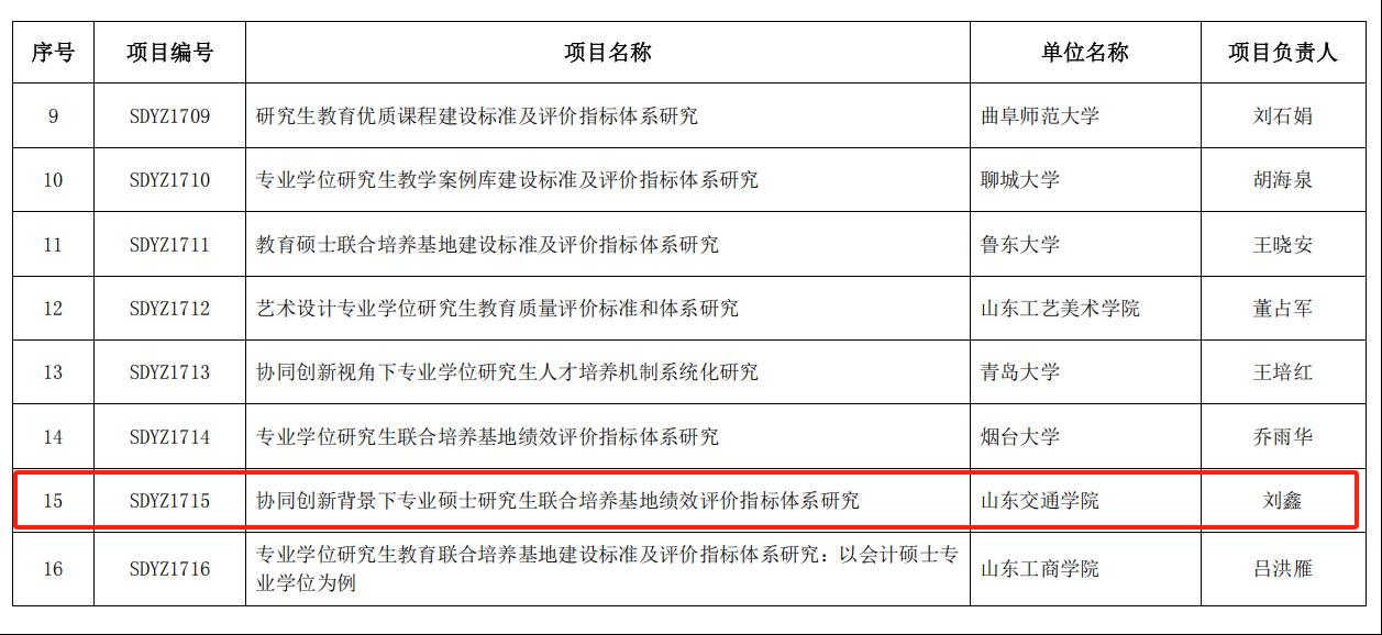 山东省教育厅:协同创新背景下专业硕士研究生联合培养基地绩效评价指标体系研究
