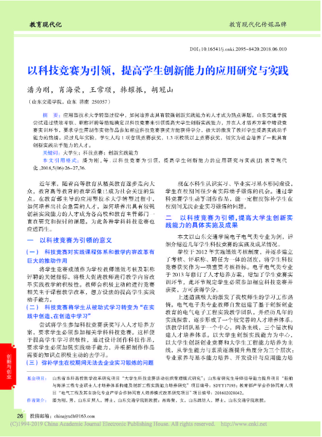 以科技竞赛为引领,提高学生创新能力的应用研究与实践