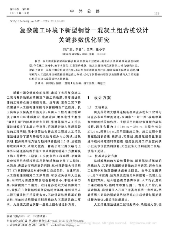 复杂施工环境下新型钢管-混凝土组合桩设计关键参数优化研究