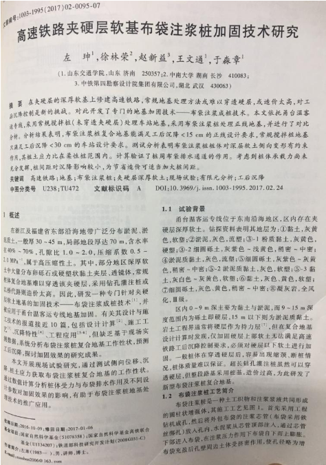 高速铁路夹硬层软基布袋注浆桩加固技术研究