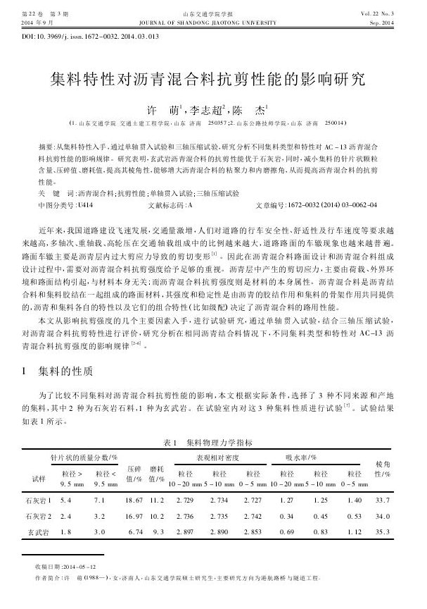 集料特性对沥青混合料抗剪性能的影响研究