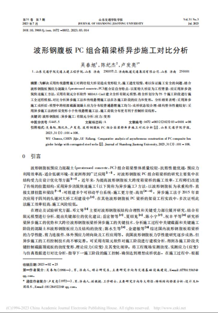 波形钢腹板PC组合箱梁桥异步施工对比分析