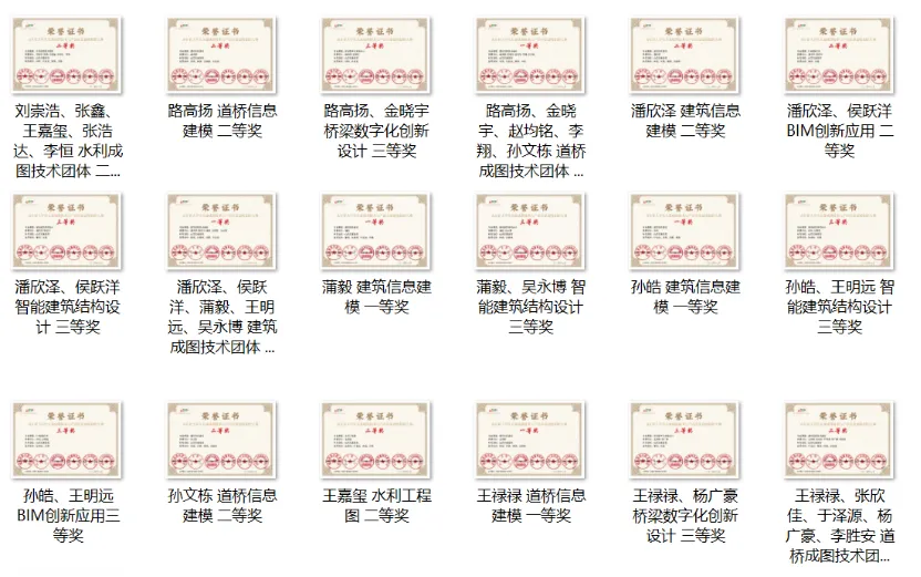山东省大学生先进成图技术与产品信息建模创新大赛部分获奖证书