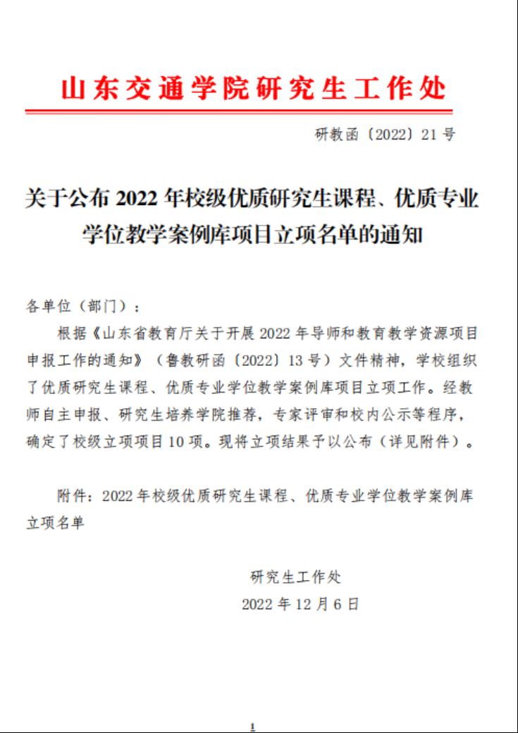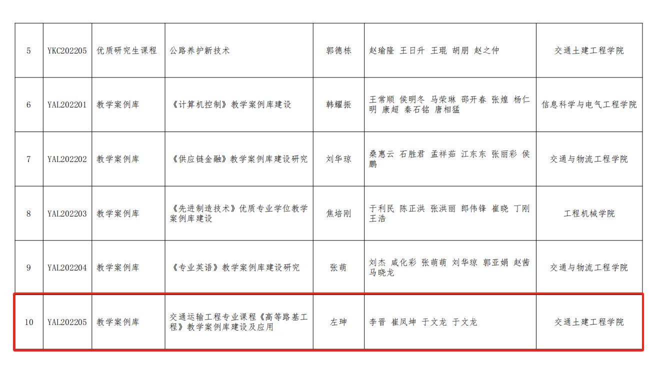 2022年度“交通运输工程专业课程《高等路基工程》教学案例库建设及应用”优质专业学位教学案例库