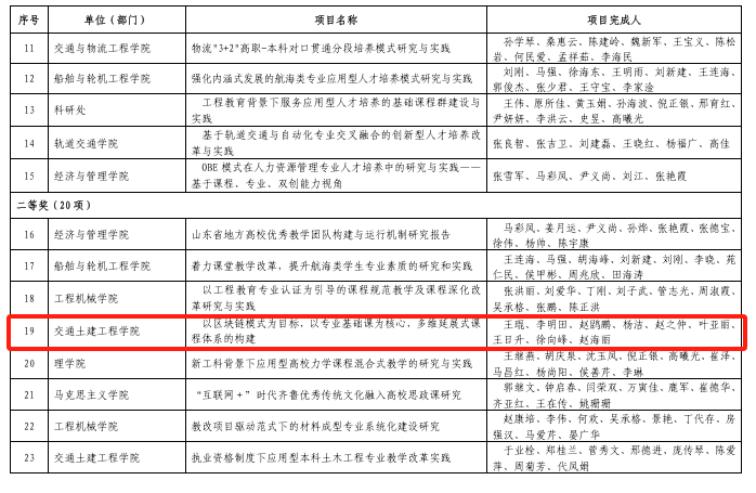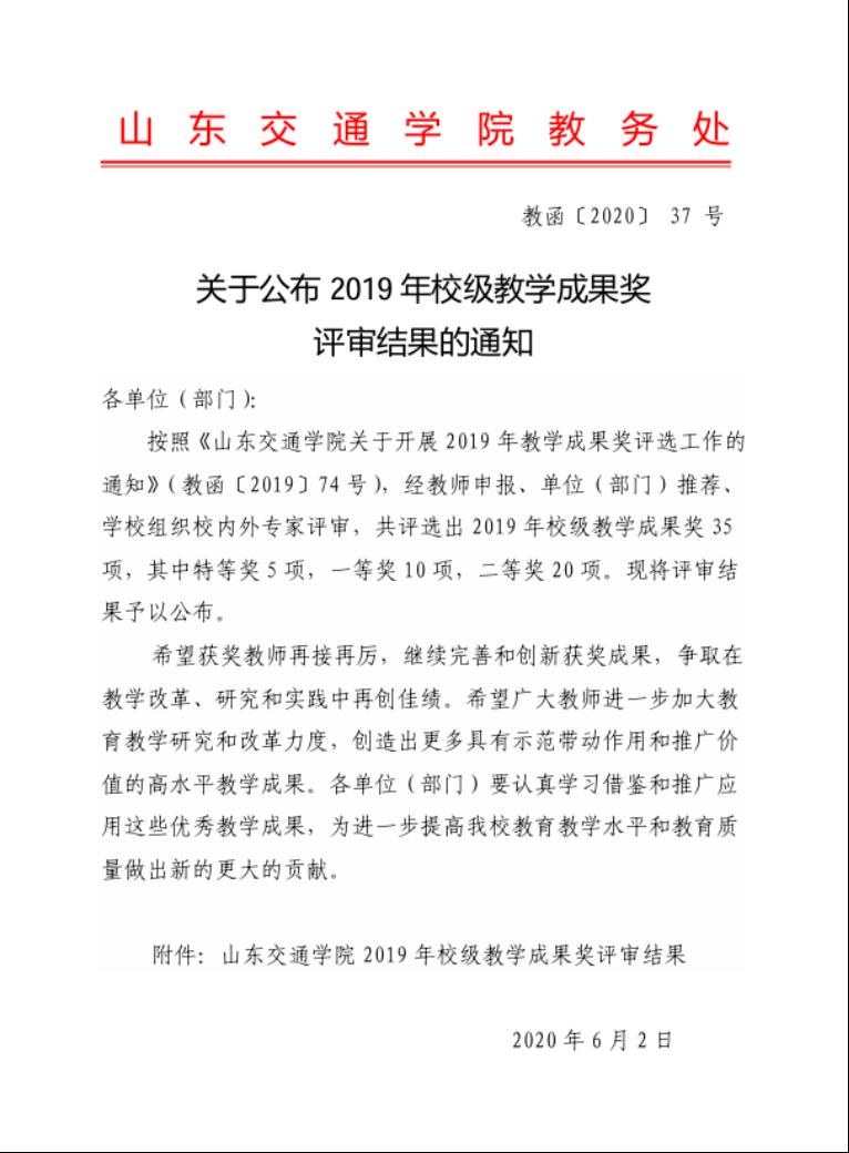 “以区块链模式为目标,以专业基础课为核心,多维廷展式课程体系的构建”获2019年校级教学成果奖