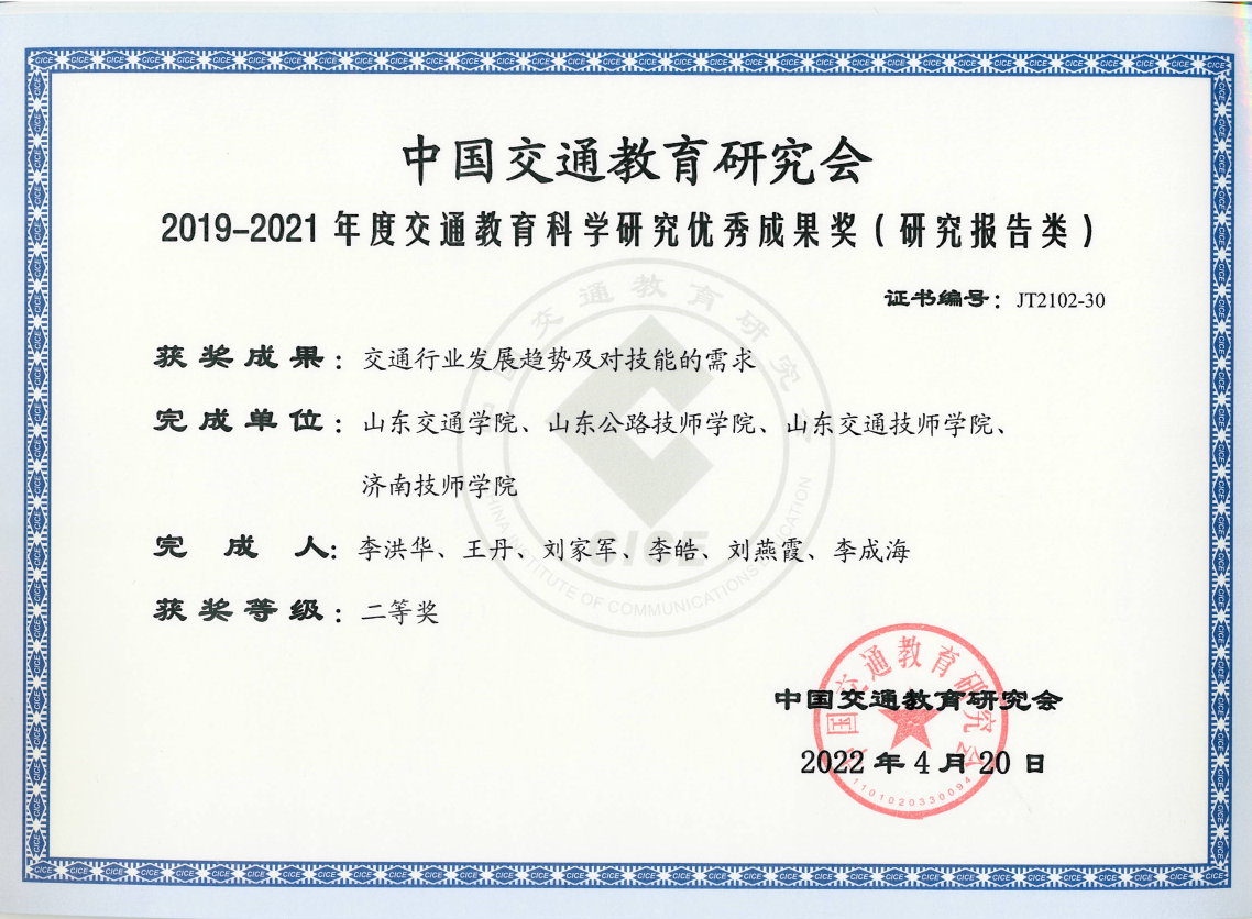 2022年交通行业发展趋势及对技能的需求,中国交通教育研究会交通教育科学优秀成果奖二等奖