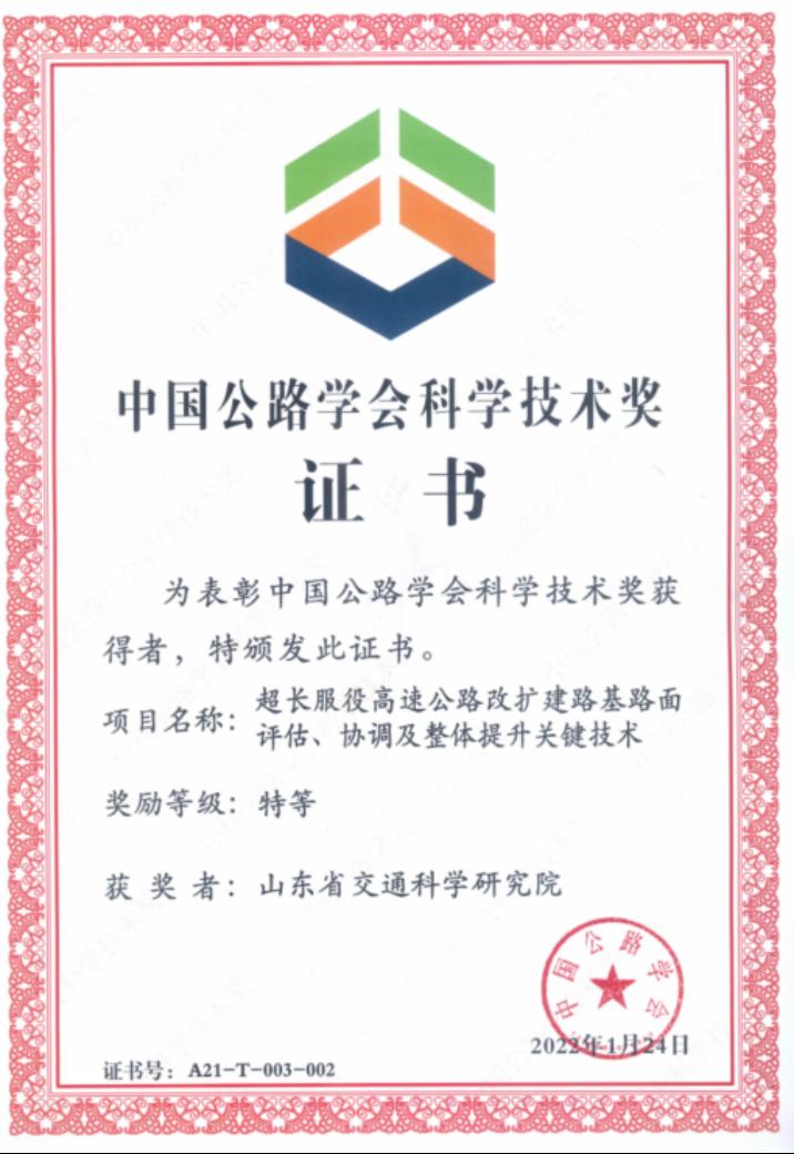2023年“超长服役高速公路改扩建路基路面评估、协调及整体提升关键技术”获中国公路学会特等奖