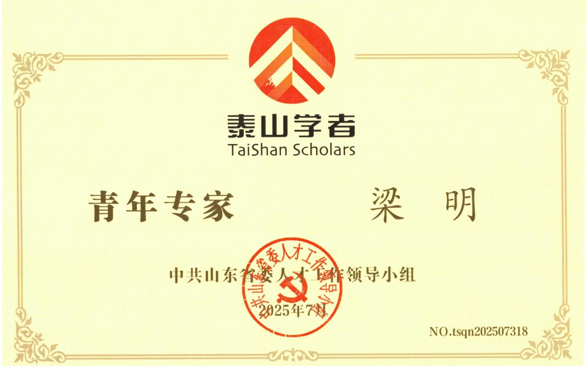 2025泰山学者青年专家省级中共山东省委人才工作领导小组-梁明