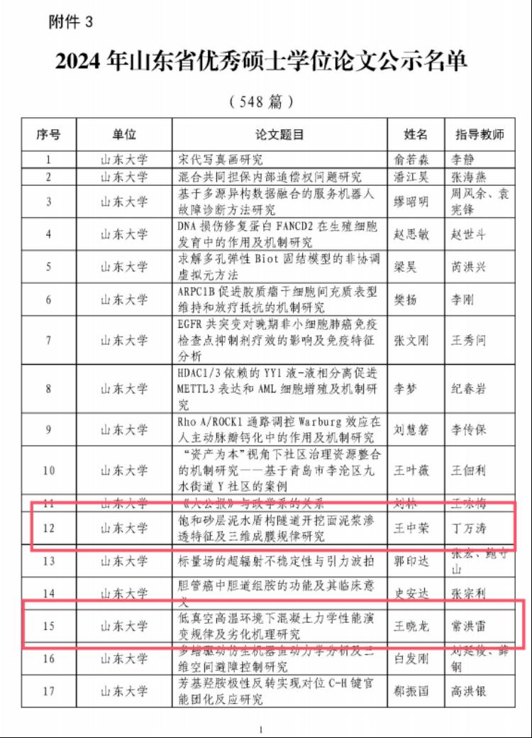 2024年常洪雷指导的研究生王晓龙获得山东省优秀硕士学位论文