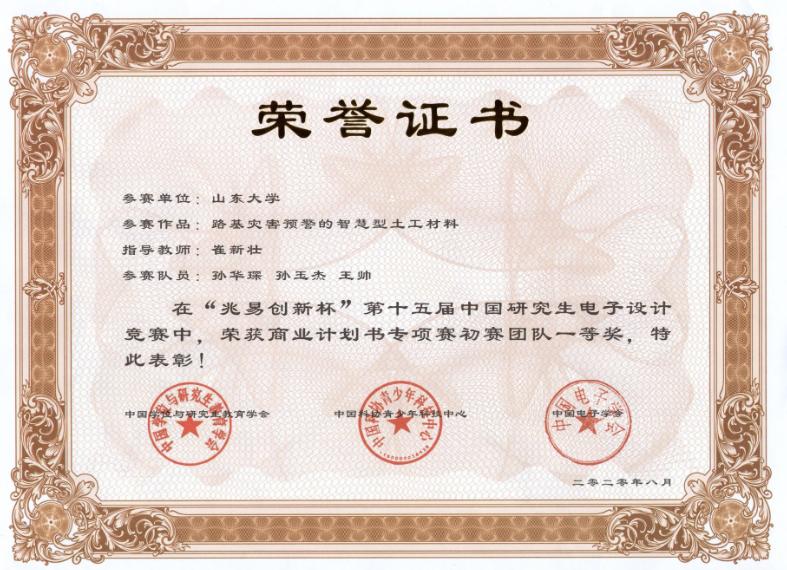 2020年“路基灾害预警的智慧型土工材料”荣获商业计划书专项赛初赛团队